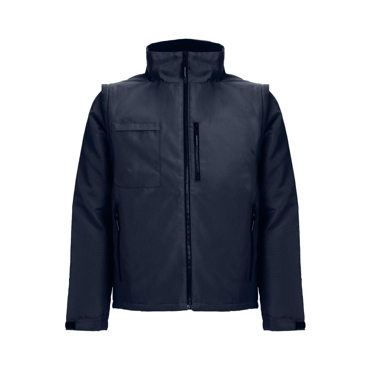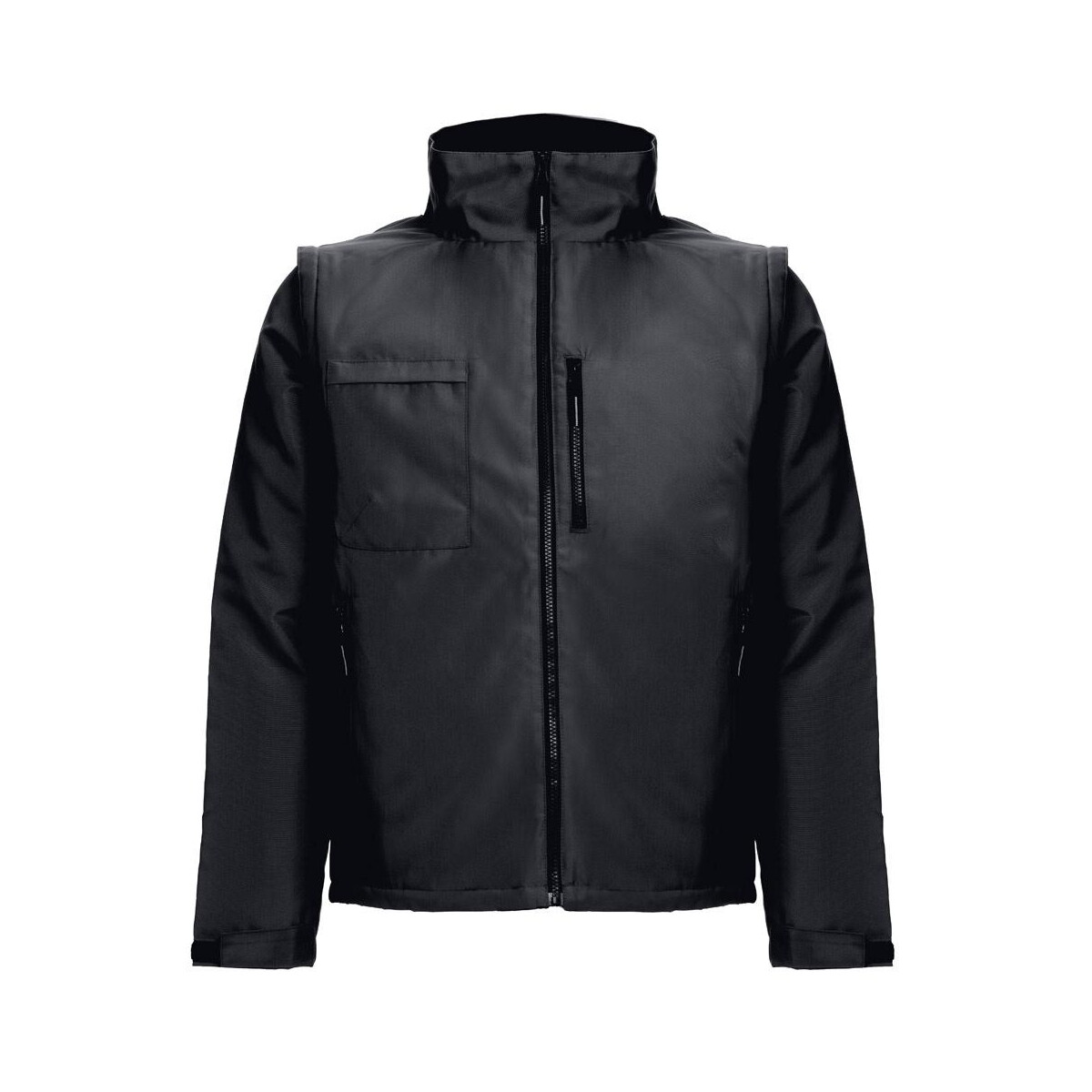 THC ASTANA. Wyściełana kurtka poliestrowa (unisex) to prawdziwy hit wśród gadżetów tekstylnych, który łączy w sobie funkcjonalność kurtki i kamizelki, gwarantując pełną swobodę działań promocyjnych. Model powstał z wytrzymałego poliestru oxford 170 g/m², posiada wypełnienie 75 g/m² oraz wnętrze z delikatnej taffety 65 g/m², co sprawia, że jest ciepły, lekki i odporny na wiatr. 🔥 Dzięki odpinanym rękawom w mgnieniu oka zmienisz go w kamizelkę, co czyni go znakomitym rozwiązaniem na dynamiczną, całoroczną ekspozycję marki.