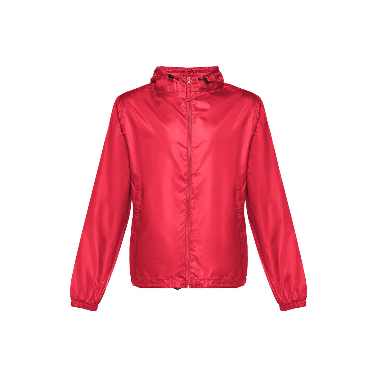 Uniwersalna wiatrówka (unisex). Tafta 100% poliester (65 g/m²). Zawiera kaptur ze stoperami, siateczkową podszewkę, gumkę ze stoperami u dołu oraz boczne kieszenie z plastikowym zamknięciem