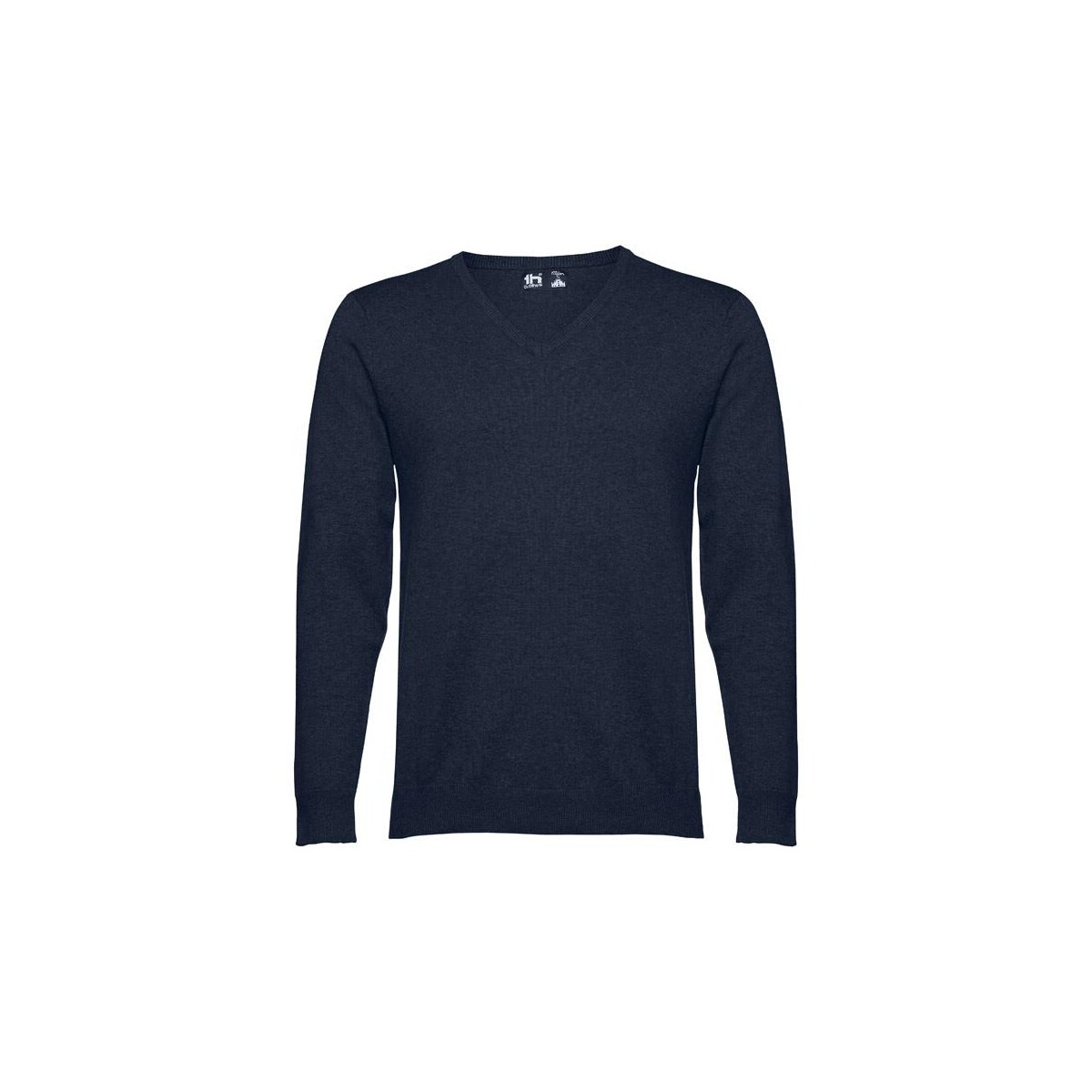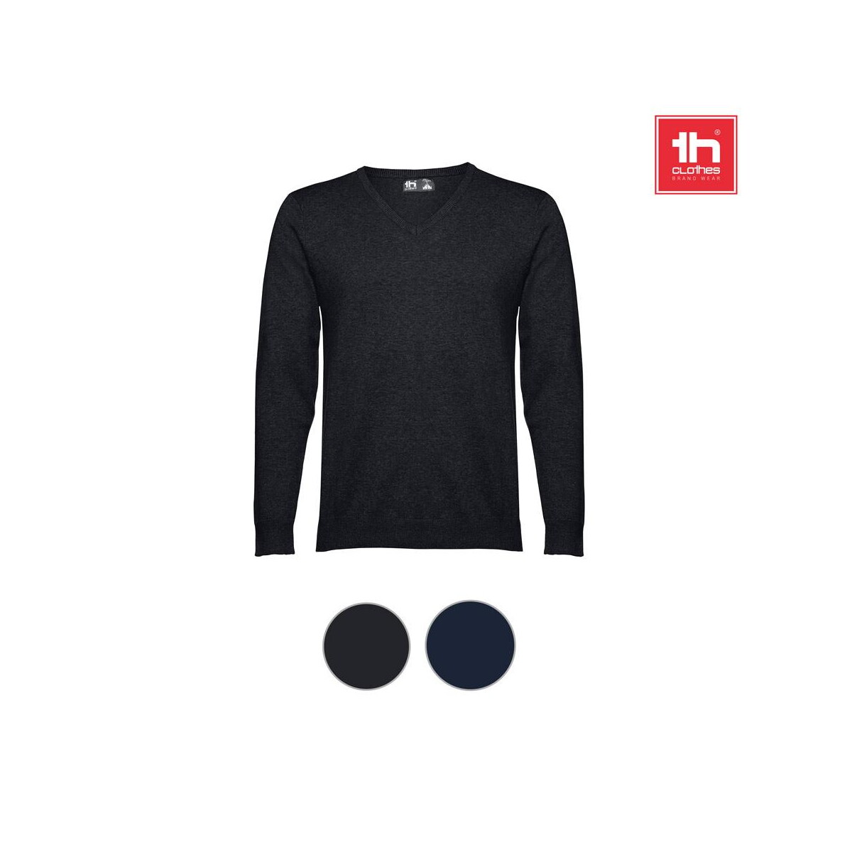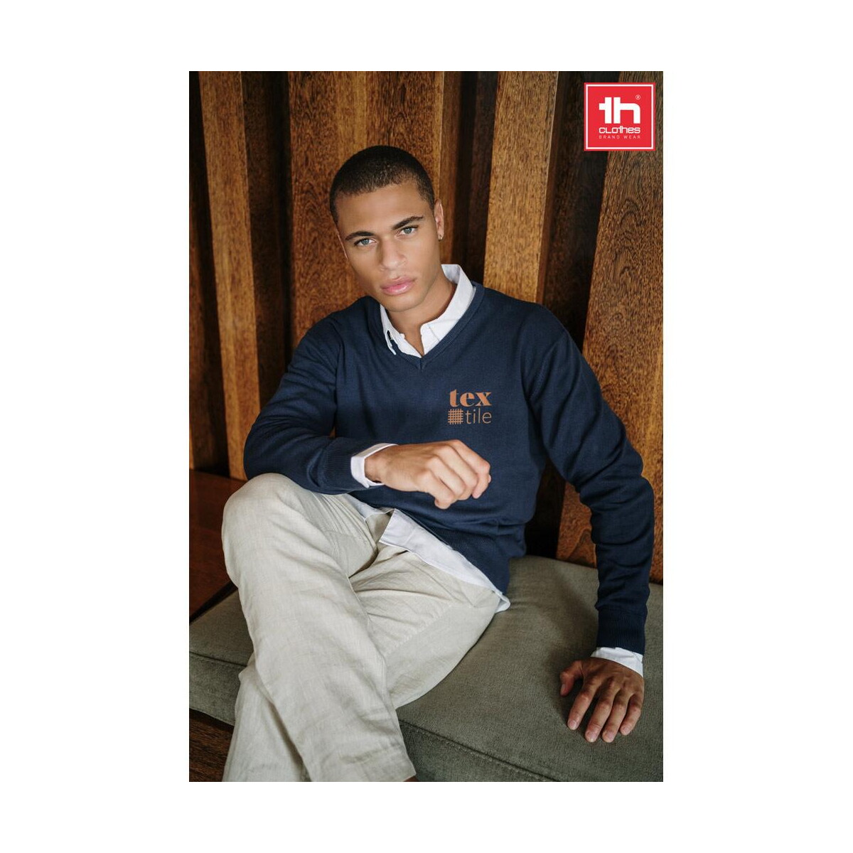 THC MILAN. Męski sweter V-neck z bawełny i poliamidu