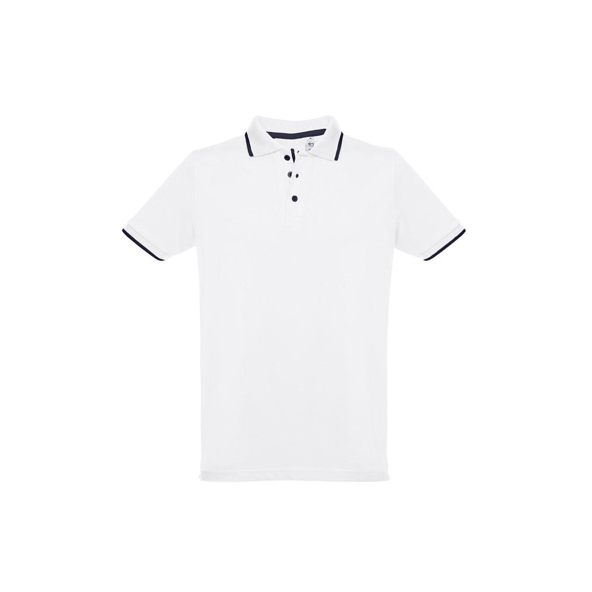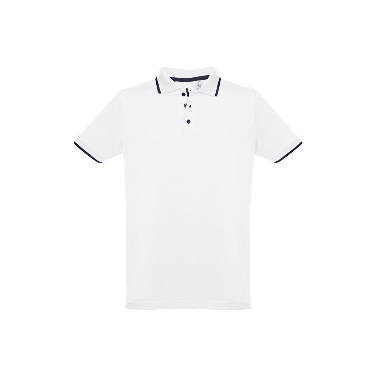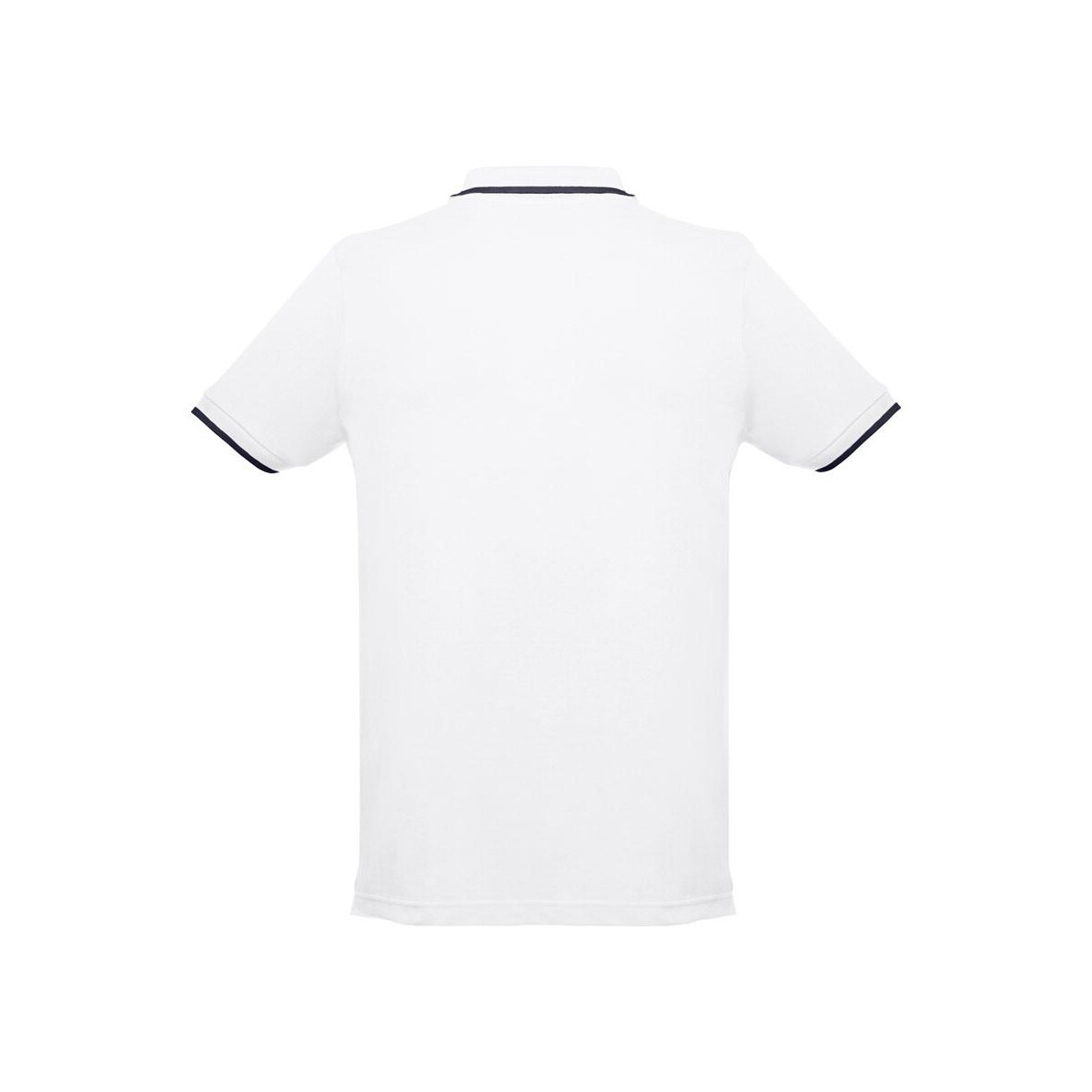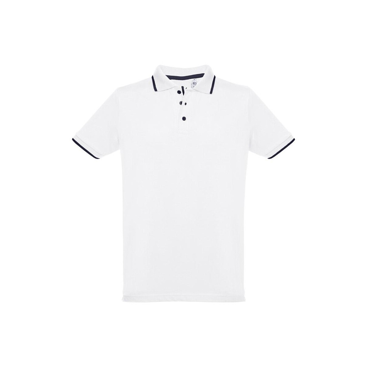 THC ROME WH. Męska dwukolorowa bawełniana koszulka polo. Kolor biały to znakomity wybór, jeśli szukasz wygodnego, a zarazem eleganckiego nośnika reklamowego 🙂 Uszyta z 100% bawełny typu pique o gramaturze 210 g/m² i ważąca jedynie 280 g gwarantuje oddychalność oraz komfort noszenia nawet podczas długich eventów promocyjnych. Kontrastowe wykończenia na kołnierzu, rękawach i wzmocnionej plisie z trzema guzikami sprawiają, że przyciąga wzrok, podkreślając Twój przekaz marketingowy. Dzięki dopasowanej talii i bocznym rozcięciom koszulka leży świetnie na każdej sylwetce w rozmiarach S–XXL, co czyni ją niezwykle uniwersalną.