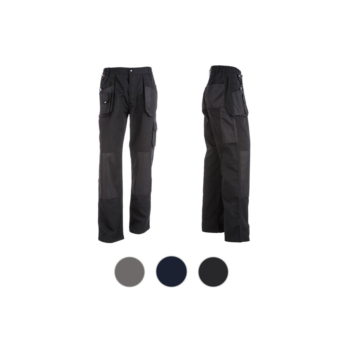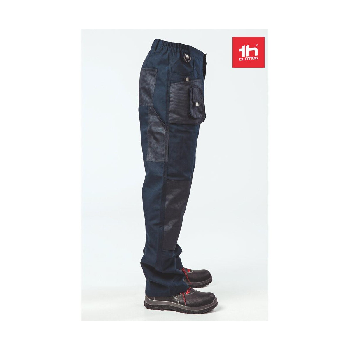THC WARSAW. Spodnie męskie z bawełny i poliestru to wszechstronny gadżet odzieżowy, który pozwoli Ci wyróżnić się zarówno na placu budowy, w warsztacie, jak i podczas firmowych eventów 🚀. Model został uszyty w mieszance 80 % bawełny i 20 % poliestru o gramaturze 260 g/m², co zapewnia znakomitą oddychalność oraz trwałość materiału. Wzmocnienia z oxfordu na nakolennikach, aż 8 pojemnych kieszeni (w tym 3 zapinane na rzep oraz specjalna na smartfona) i elastyczny pas z praktycznym klipsem do zawieszania akcesoriów sprawiają, że te spodnie są niezastąpione w wymagających warunkach pracy. Dodatkowe odblaskowe wykończenia z przodu zwiększają bezpieczeństwo po zmroku – to detal, który doceni każda ekipa serwisowa, logistyczna czy budowlana.