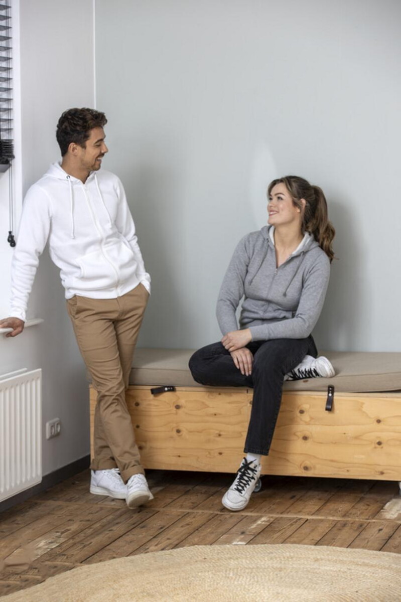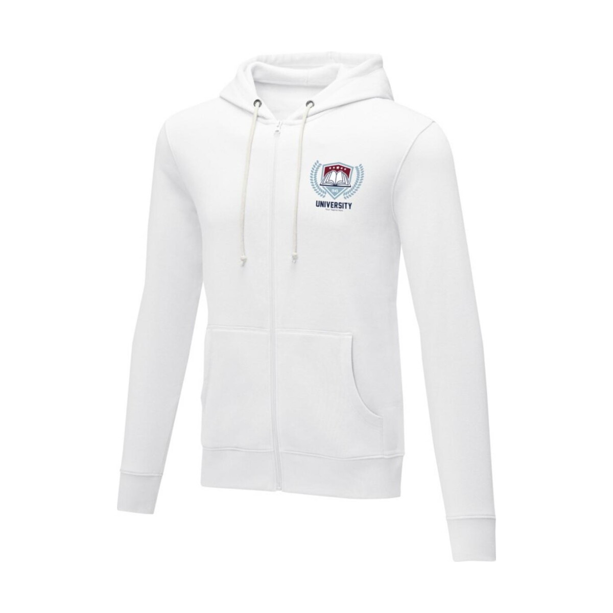 Theron męska zapinana na zamek bluza z kapturem to propozycja, która łączy sportowy charakter z miejską elegancją, dzięki czemu staje się znakomitym wyborem dla Twojej firmy podczas akcji promocyjnych. Model uszyty z dzianiny o gramaturze 240 g/m² (50 % bawełny, 50 % poliestru) waży jedynie 480 g, zachowując przy tym świetne właściwości termoizolacyjne. Wygodny kaptur, pełny zamek błyskawiczny i praktyczna kieszeń kangurka gwarantują komfort zarówno w biurze, jak i podczas aktywności na świeżym powietrzu. Szczotkowane wnętrze otula miękkością, a płaskie ściągacze przy mankietach i na dole utrzymują bluzę na miejscu nawet przy intensywnym ruchu. 🙂