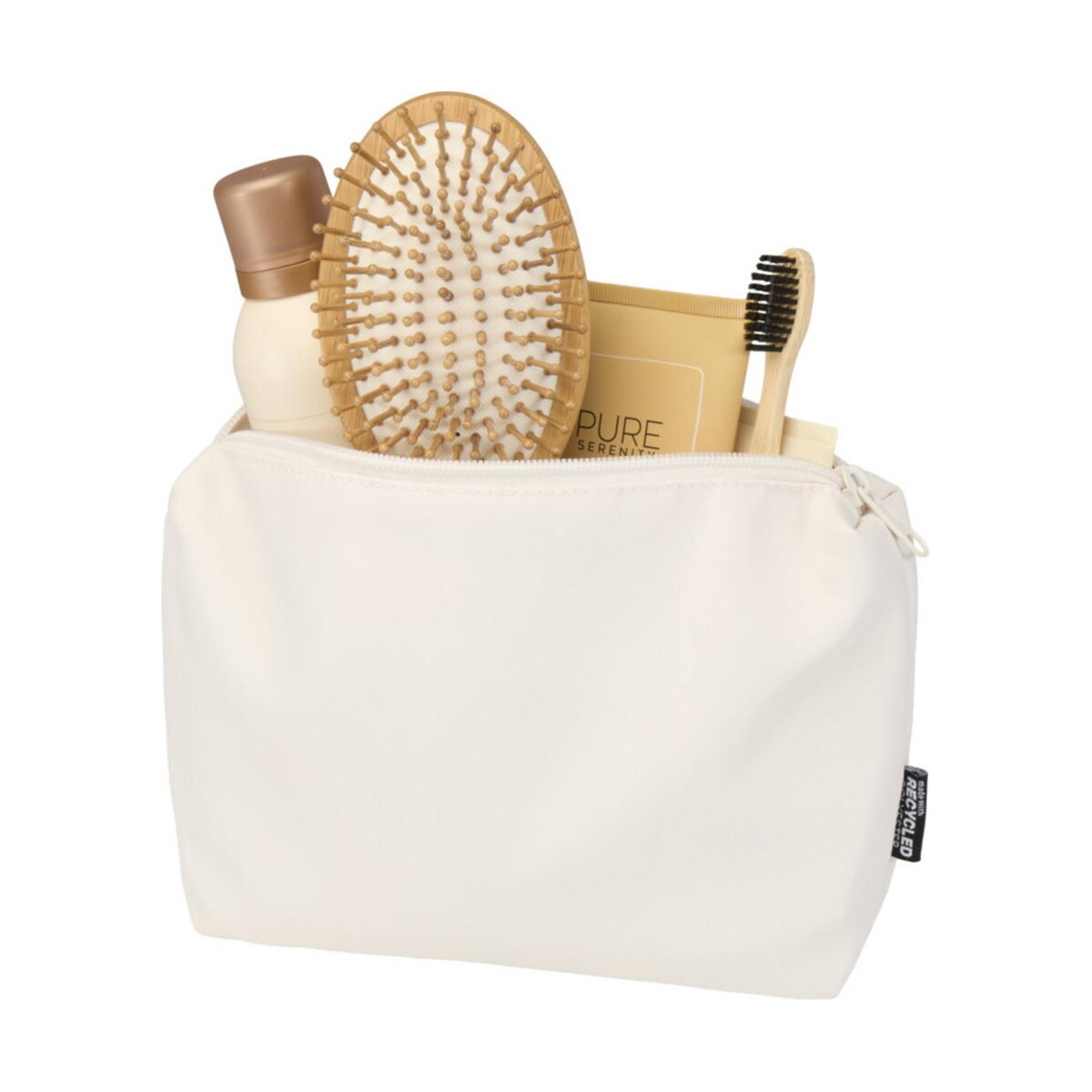 Trip Aware™, kosmetyczka podróżna wykonana z materiałów z recyklingu, 2 l zachwyca funkcjonalnością i ekologicznym rodowodem. Uszyta z wytrzymałego, a zarazem lekkiego Recicled Poliester 290D ze wzmocnionym spodem oraz podszewką RPET 210D/PU waży zaledwie 54 g, a jej kompaktowe wymiary 6 × 14,5 × 24 cm sprawiają, że z łatwością zmieści się w podręcznym bagażu, plecaku czy torbie sportowej. Pojemność 2 l pomieści ulubione kosmetyki, ładowarki, a nawet elektronikę, utrzymując porządek podczas wyjazdów służbowych i wakacyjnych. W zestawie otrzymujesz zawieszkę Aware™ z kodem QR, która umożliwia śledzenie całej drogi surowca – to transparentność, która buduje zaufanie klientów 🙂