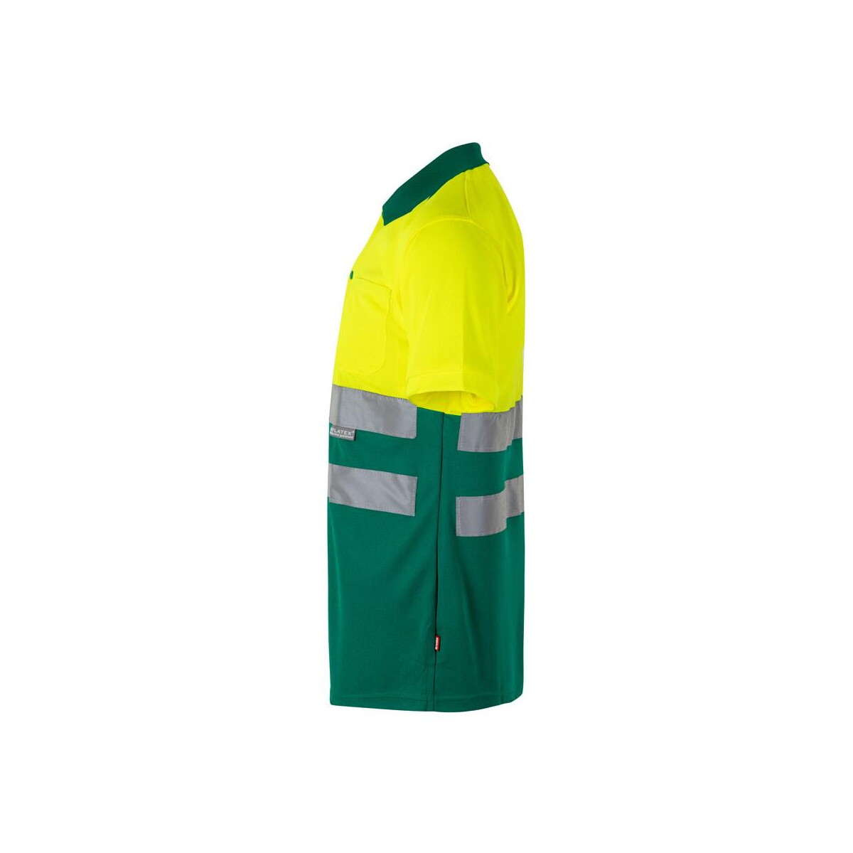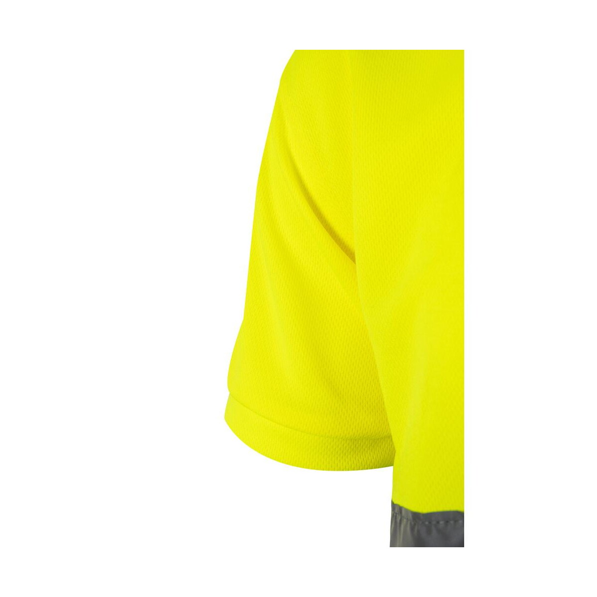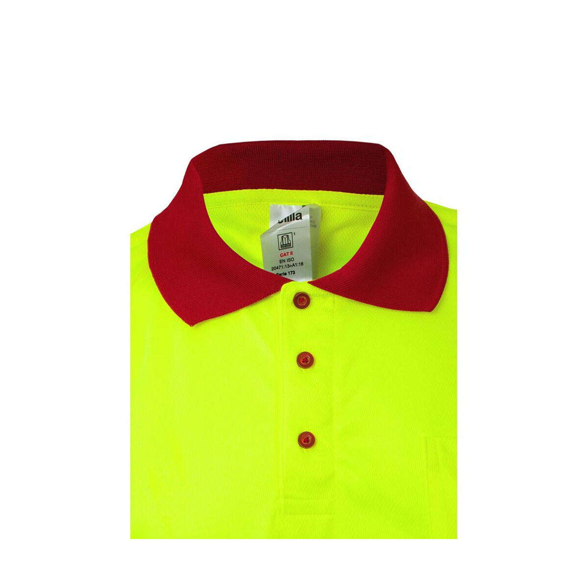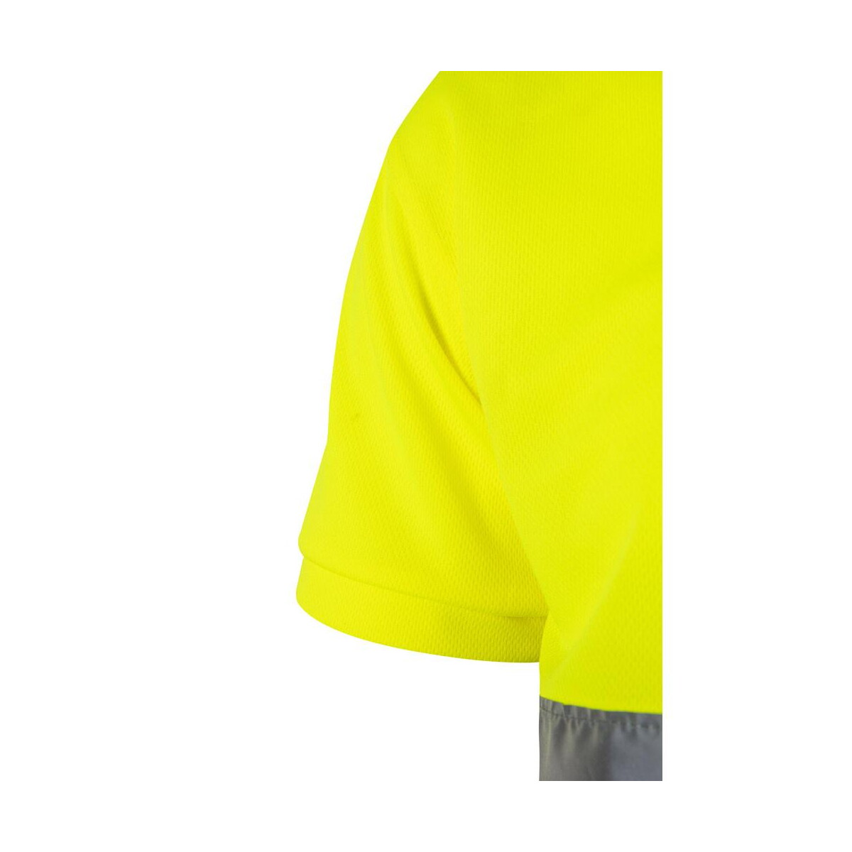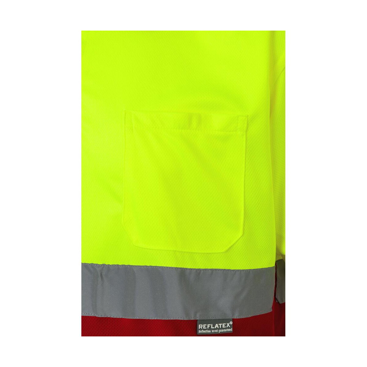 Model wyposażono w guziki w kontrastowym kolorze oraz kołnierzyk i mankiety wykończone ściągaczem, co podkreśla sportowo-elegancki charakter produktu. Certyfikaty EN20471 oraz zgodność z rozporządzeniem UE 2016/425 potwierdzają, że koszulka spełnia wysokie normy jakości i bezpieczeństwa – to atut szczególnie ważny dla branży budowlanej, logistycznej i eventowej. Warianty w rozmiarach 4XL i 5XL gwarantują dopasowanie nawet dla bardzo wysokich czy krępych sylwetek, a waga zaledwie 270 g nie obciąża użytkownika podczas intensywnej pracy.