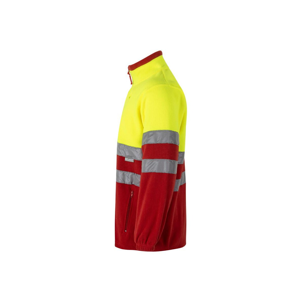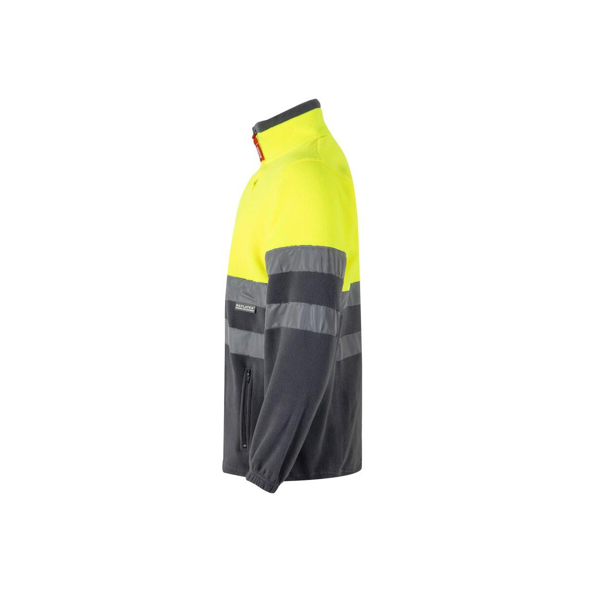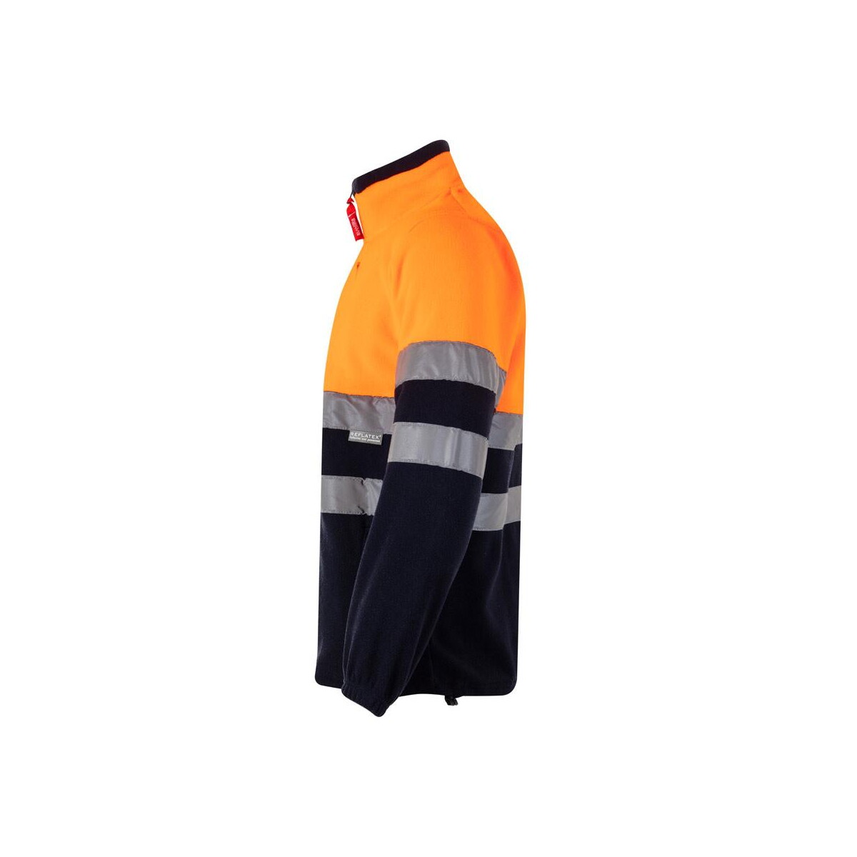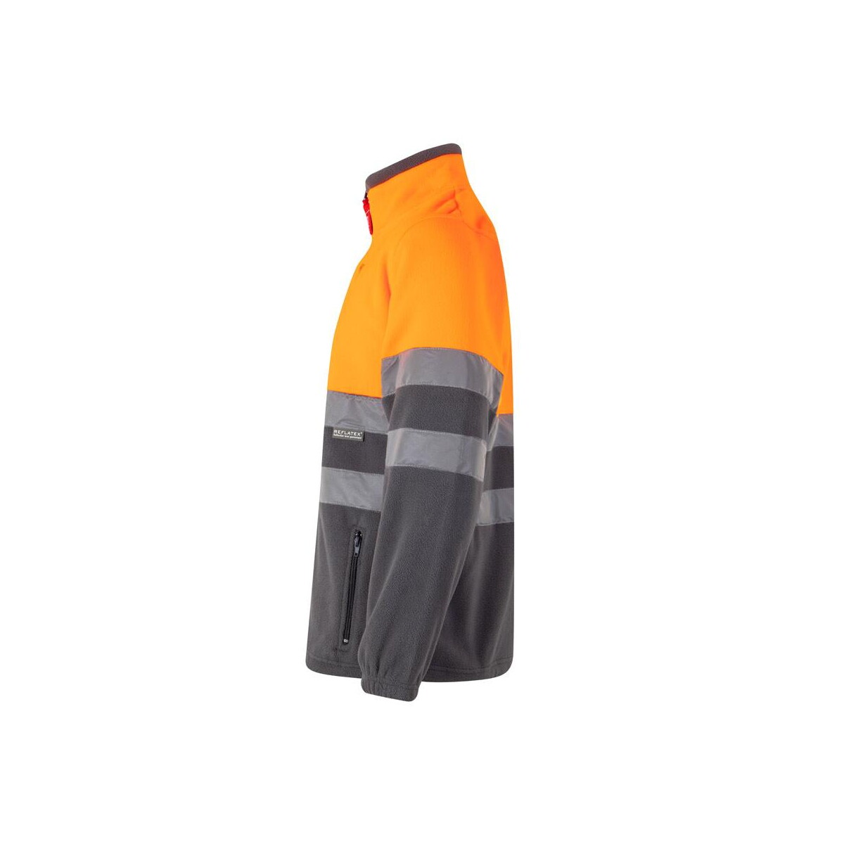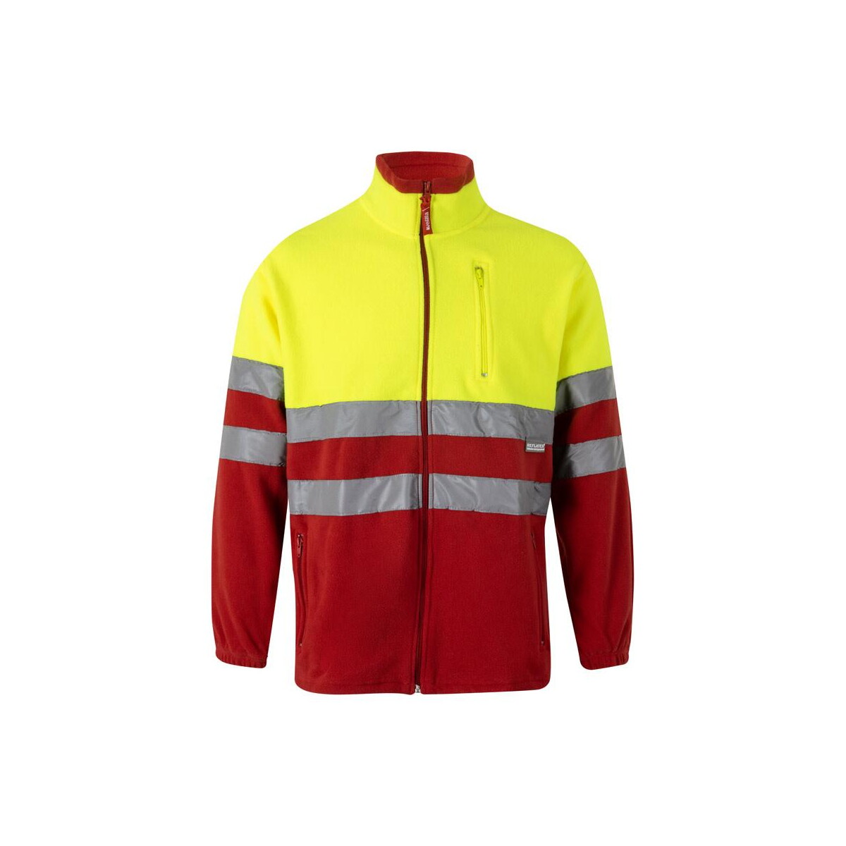 Wytrzymały materiał 280 g/m² chroni przed chłodem, a w pełni reklamowy charakter dopełnia praktyka: centralny zamek błyskawiczny, trzy kieszenie zapinane na suwak, elastyczne mankiety oraz ściągacz ze stoperem, który pozwala dopasować kurtkę do sylwetki. Odblaskowe paski na tułowiu i rękawach zwiększają bezpieczeństwo po zmroku, czyniąc model VL EROS LARGE. Dwukolorowa kurtka polarowa (280 g/m²), poliester (100%) rewelacyjnym wyborem dla służb drogowych, kurierów czy pilotów wycieczek.