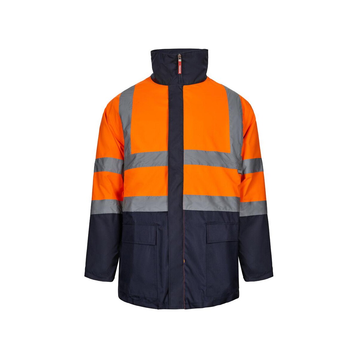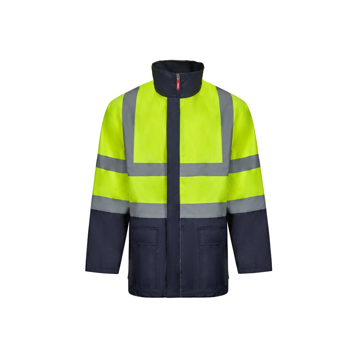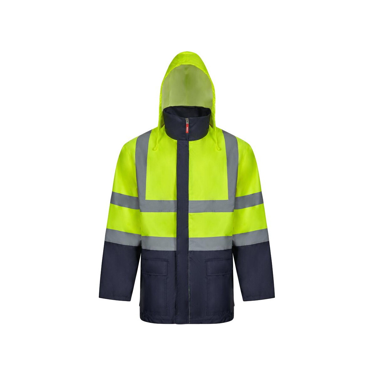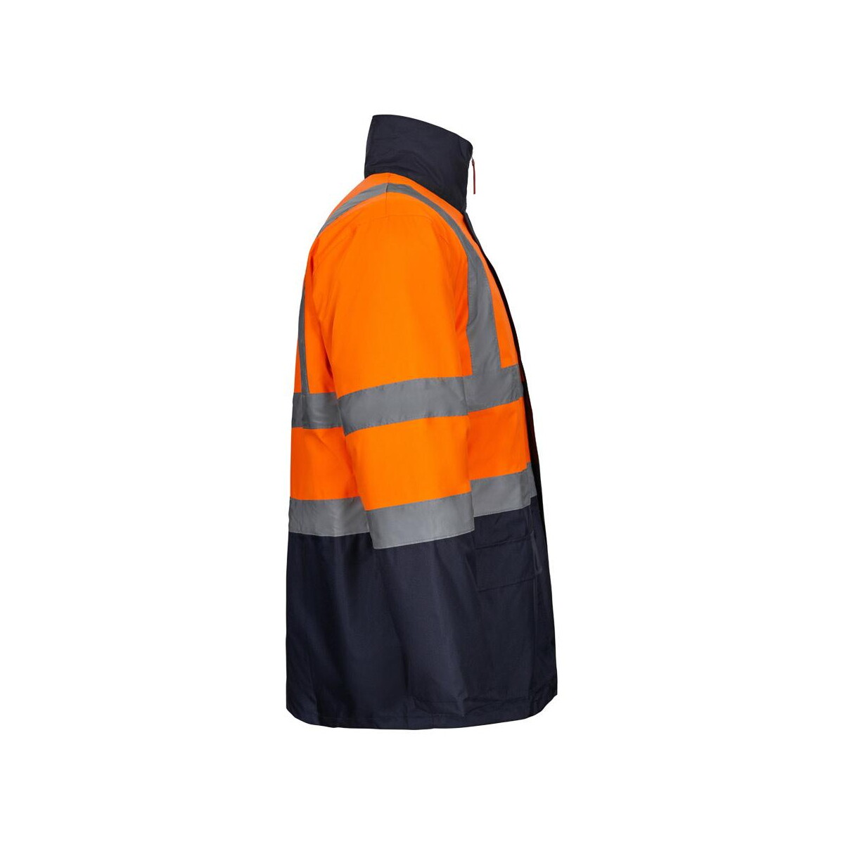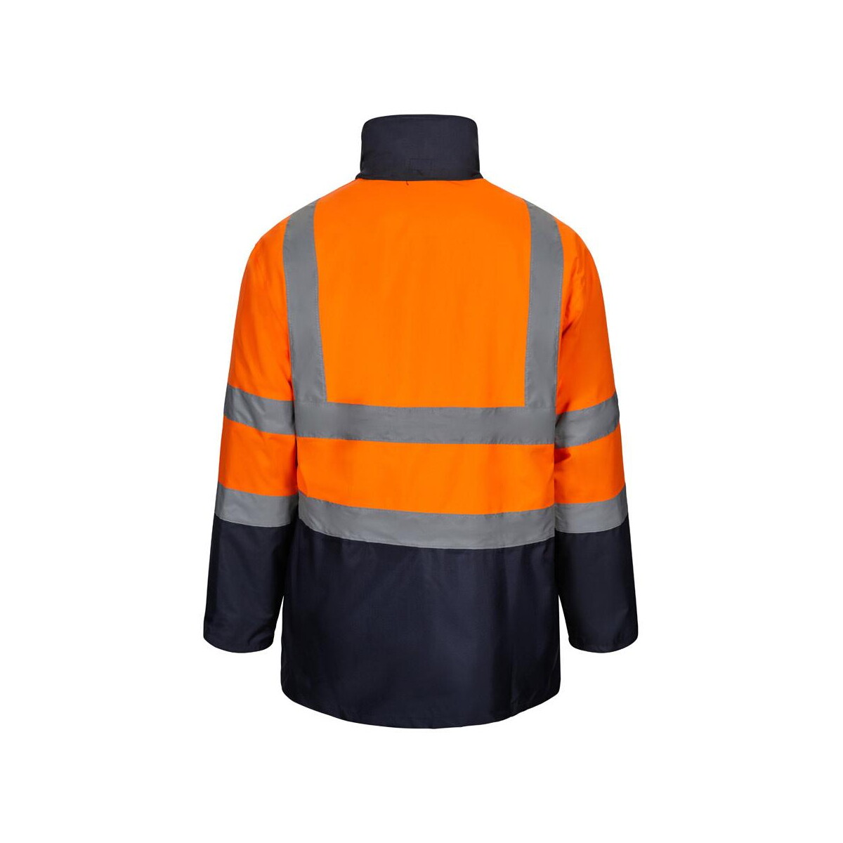 VL JUNO. Dwukolorowa kurtka 4 w 1 (180 g/m²) z poliestru (100%) z powłoką PU to wszechstronny, znakomity wybór dla marek stawiających na bezpieczeństwo i widoczność. Dzięki konstrukcji „cztery części w jednym” – parka, płaszcz przeciwdeszczowy, kurtka i kamizelka – jeden produkt zastępuje cały zestaw odzieży ochronnej. Wysokiej jakości poliester pokryty warstwą PU skutecznie izoluje od wiatru i deszczu, a odblaskowe paski umieszczone na tułowiu, ramionach i rękawach zwiększają widoczność użytkownika w każdych warunkach pogodowych 😊.
