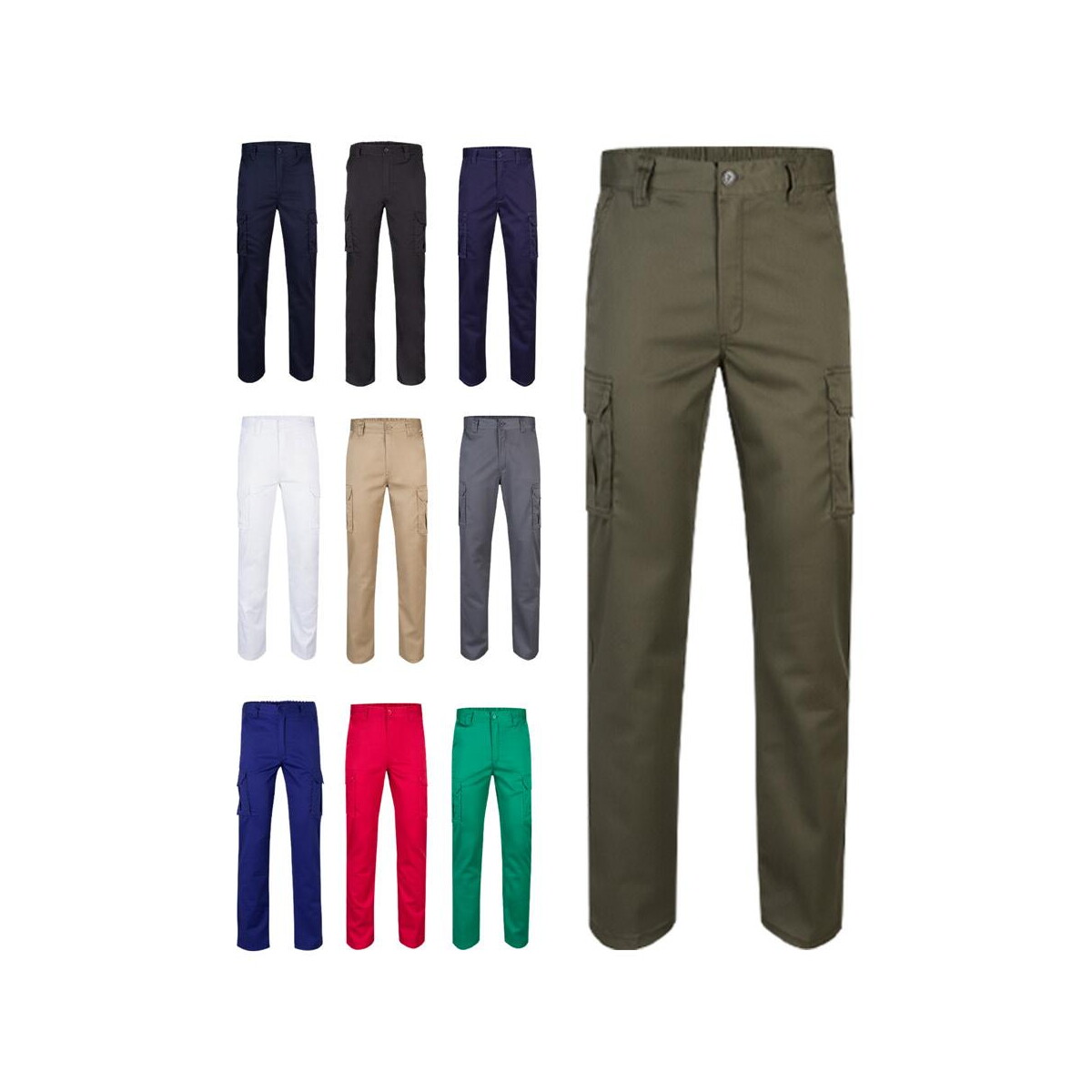 VL LUGH. Dwukolorowe spodnie diagonalne z wieloma kieszeniami (240 g/m²), z bawełny (35%) i poliestru (65%)