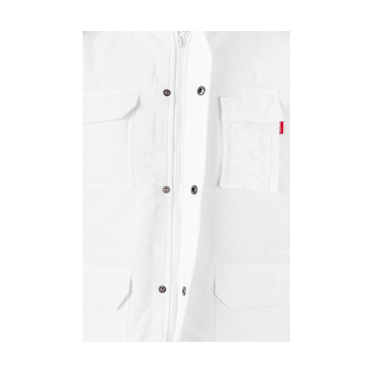 Materiał 100% poliester o gramaturze 265 g/m² gwarantuje wytrzymałość, łatwe czyszczenie i odporność na wilgoć. Jednocześnie niska waga produktu (475 g) sprawia, że nawet podczas całodziennej pracy nie odczujesz zmęczenia. Dostępność szerokiej gamy kolorów – od klasycznej czerni i granatu, przez energetyczną czerwień, po elegancką biel czy naturalną zieleń – pozwala dopasować model do barw firmowych. Wielokanałowy zamek błyskawiczny ukryty pod listwą guzikową to dodatkowa ochrona przed wiatrem.