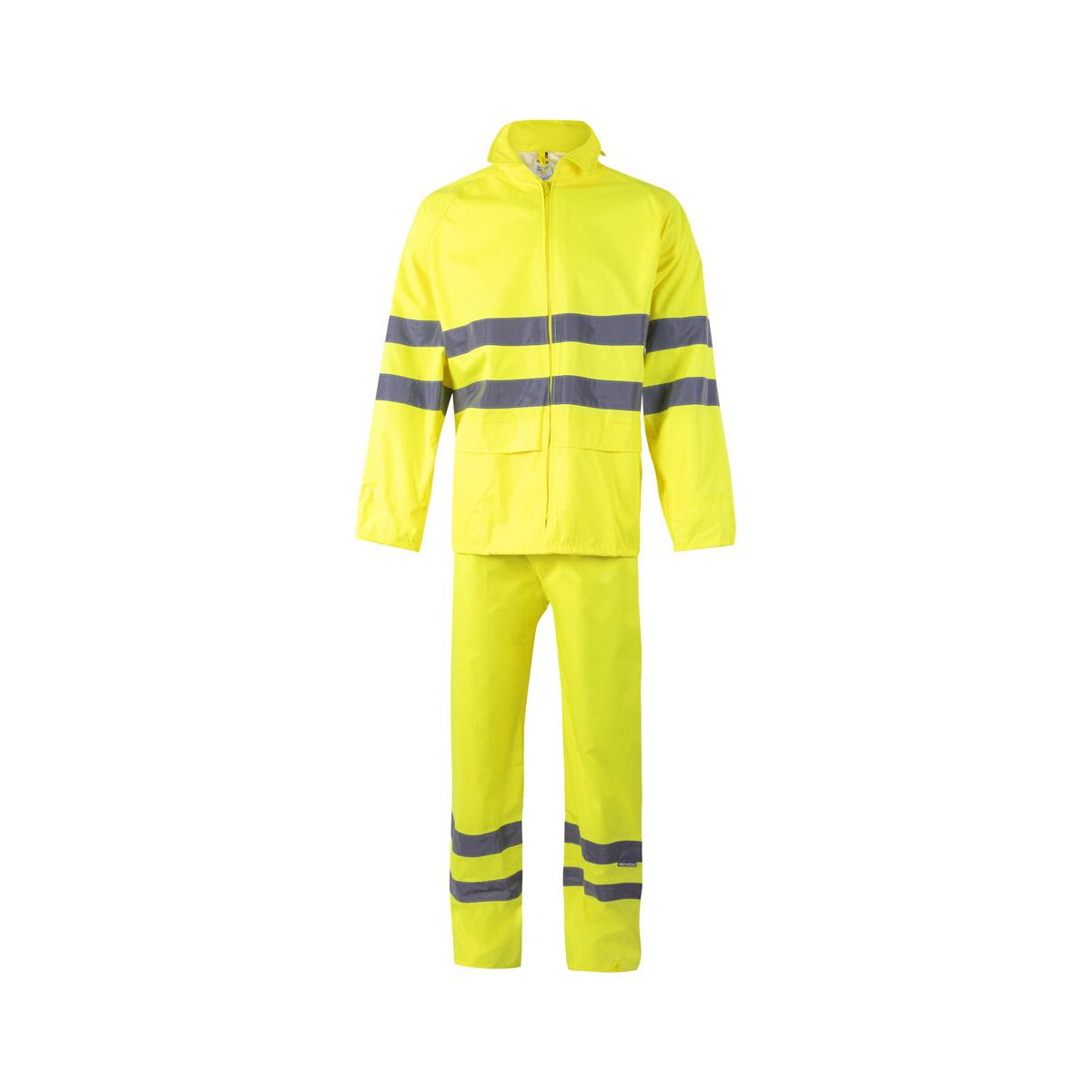 VL VENUS. Kombinezon przeciwdeszczowy (130 g/m²) z poliestru (100%) z powłoką PU to znakomity sposób, by wyróżnić zespół w każdych warunkach pogodowych 🌧️. Wykonany z mocnego poliestru pokrytego PU, spełnia normy EN20471 klasa 3, gwarantując maksymalną widoczność dzięki fluorescencyjnym barwom oraz szerokim odblaskom na kurtce i spodniach. Centralny zamek, chowany kaptur, regulacja na stoper, elastyczny pas i praktyczne kieszenie z klapkami podnoszą komfort noszenia. Wewnętrzna siatka i metalowe oczka zapewniają oddychalność, a ściągacze przy nogawkach pozwalają dopasować kombinezon do obuwia roboczego.