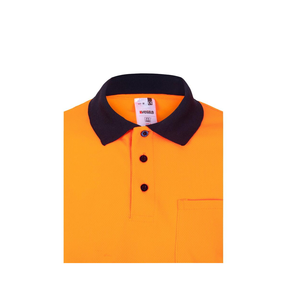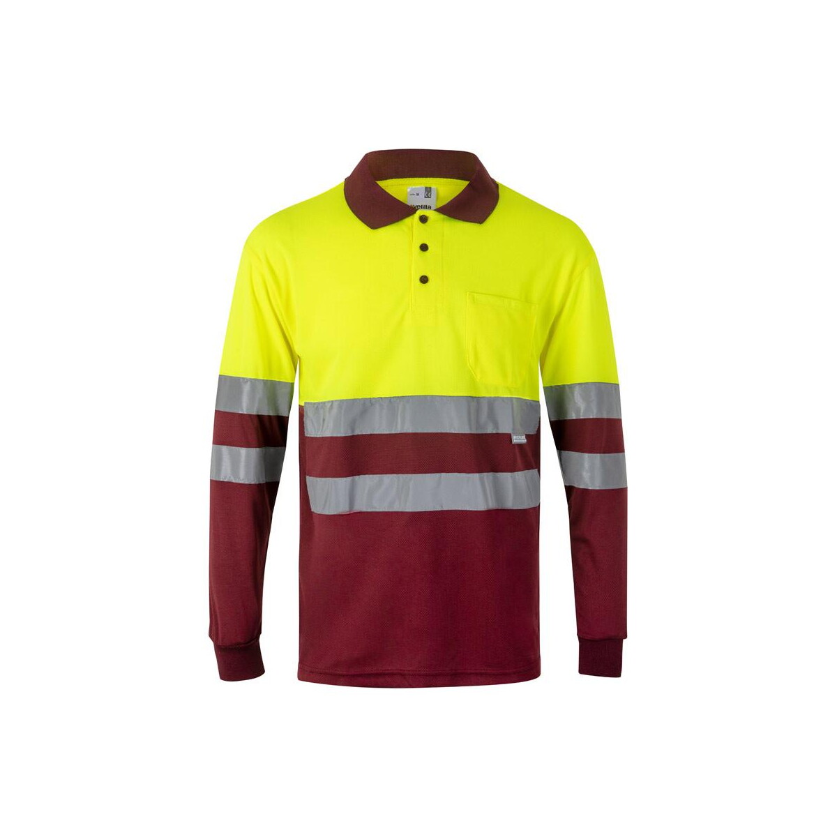 VL VULCAN LARGE. Dwukolorowa koszulka polo w ptasie oczy (160 g/m²) z długim rękawem, poliester (100%) to perfekcyjne połączenie funkcjonalności, wygody i widoczności. Kontrastowe guziki, prążkowany kołnierzyk i mankiety nadają jej nowoczesny charakter, a odblaskowe paski na tułowiu oraz rękawach gwarantują bezpieczeństwo nawet przy słabym oświetleniu 🚧. Certyfikaty EN20471 oraz klasa Nº 1 potwierdzają wysokie standardy ochrony. Model dostępny w rozmiarach 4XL i 5XL, waży zaledwie 345 g, więc mimo solidnej konstrukcji pozostaje lekki i przewiewny.