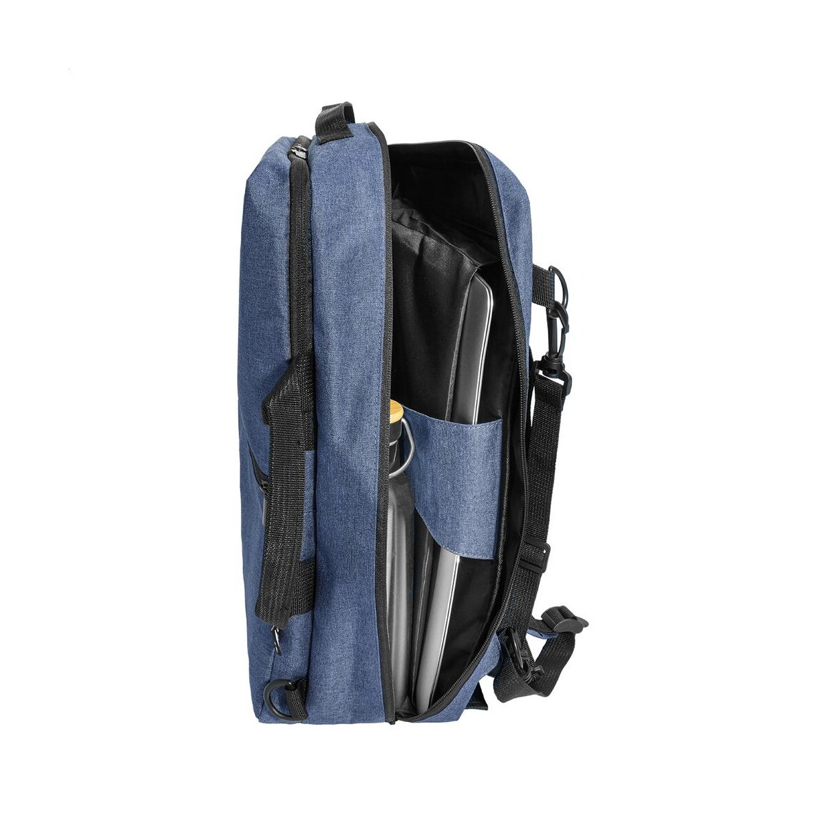 Walton Plecak na dokumenty RPET to znakomity 2-w-1 nośnik wizerunku, który płynnie łączy funkcjonalność nowoczesnego plecaka z elegancją torby konferencyjnej. Dzięki wykorzystaniu 600D Poliestru z recyklingu PET produkt wspiera zrównoważony rozwój, a charakterystyczna metka RPET podkreśla proekologiczną troskę dla Twojej firmy 🙂. Wewnętrzna, wyściełana przegroda chroni laptop o przekątnej 15″, a dodatkowy, odpinany pasek pozwala w mgnieniu oka zamienić plecak w torbę na dokumenty – to rozwiązanie jest po prostu doskonałe na każdą sytuację biznesową.