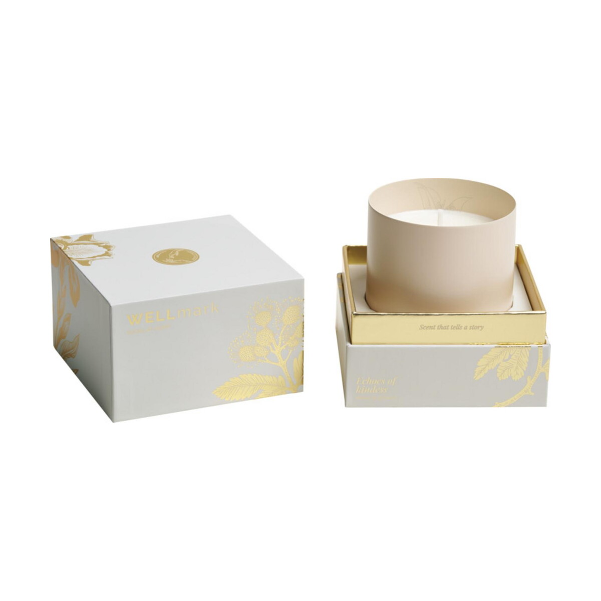 Trzy intrygujące nuty zapachowe – „Echoes of Kindness”, „Quiet Rebellion” oraz „Tender Affection” – wypełniają przestrzeń ciepłem i luksusem, budując atmosferę odprężenia zarówno w domu, jak i w biurze. Wellmark świeca zapachowa będzie świetnym wsparciem kampanii promocyjnych branży beauty, wellness, spa, hotelarskiej, a także segmentu nieruchomości premium, gdzie ważne jest podkreślanie jakości i dbałości o komfort klienta. To również niezrównane rozwiązanie dla działów HR organizujących pakiety powitalne dla nowych pracowników lub prezentów świątecznych dla Twojej firmy.