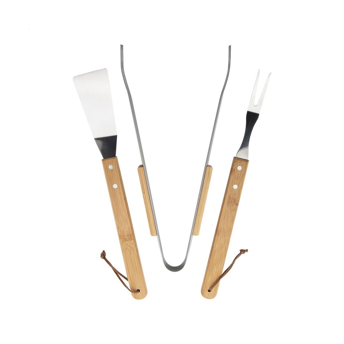 Yakiboo zestaw do grilla/BBQ to prawdziwie uniwersalny gadżet, który sprawdzi się zarówno w przydomowym ogrodzie, jak i na firmowym evencie plenerowym 🌞. Trzy starannie wykonane narzędzia – widelec, szczypce oraz łopatka – powstały ze stali nierdzewnej, co gwarantuje odporność na korozję, łatwe czyszczenie i wieloletnią trwałość. Ergonomiczne uchwyty z estetycznego bambusa zapewniają wygodę użytkowania oraz nadają całości naturalny charakter. Całość zamknięto w ekologicznym papierowym pudełku, które znakomicie podkreśli ekologiczne wartości marki.