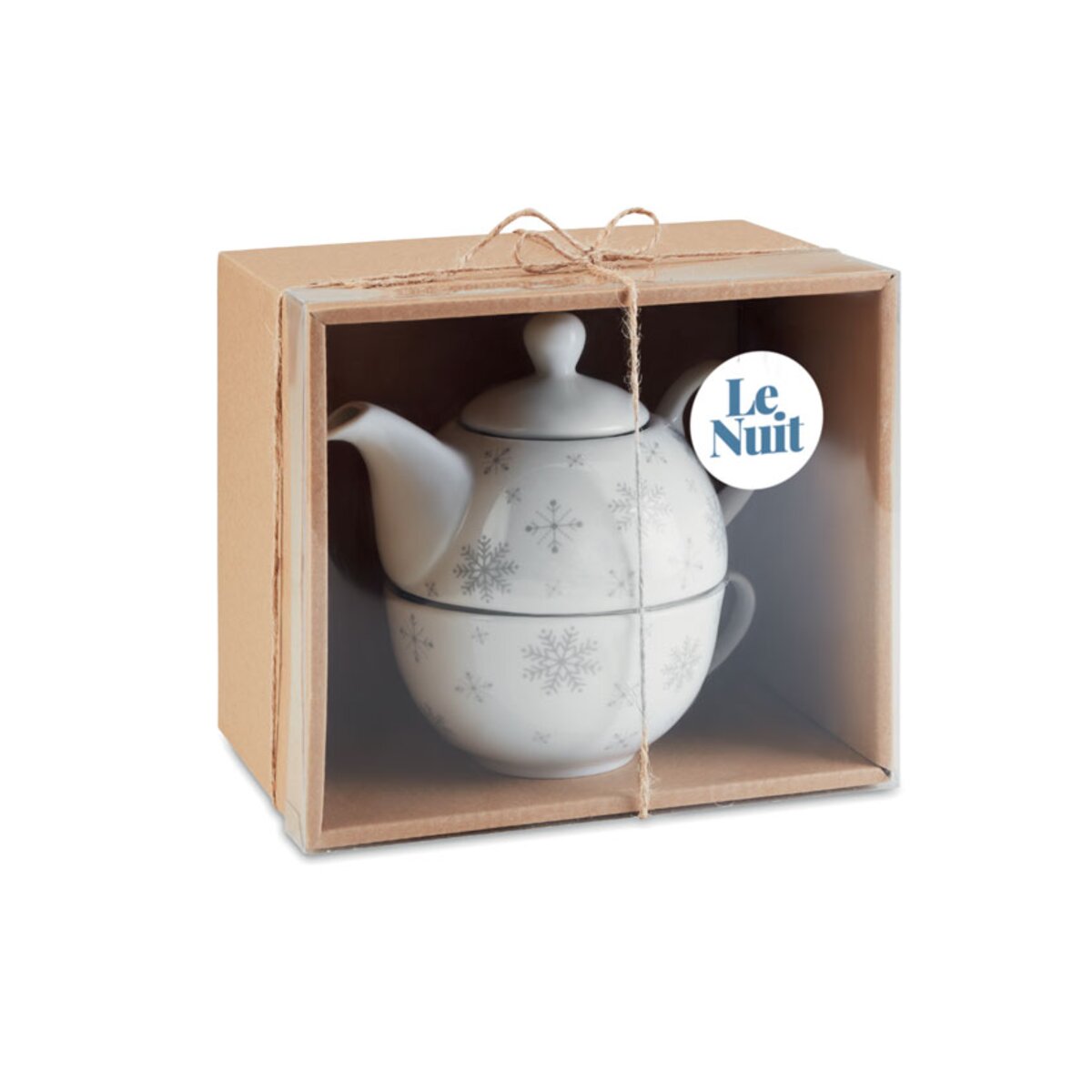 Komplet ten pokochają miłośnicy herbaty, pasjonaci slow life, pracownicy biurowi szukający chwili wytchnienia, a także klienci premium ceniący wysoką jakość materiałów. Ceramika wykorzystana do produkcji filiżanki równomiernie utrzymuje ciepło naparu, a odporny na uszkodzenia korpus czajnika pozwala cieszyć się aromatycznym parzeniem przez długie lata. To doskonały gadżet do promocji jesienno-zimowych kampanii marketingowych, świątecznych pakietów prezentowych czy zestawów powitalnych dla nowych pracowników 🙂.