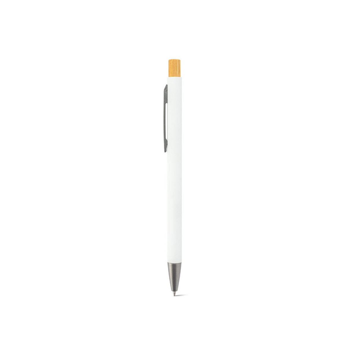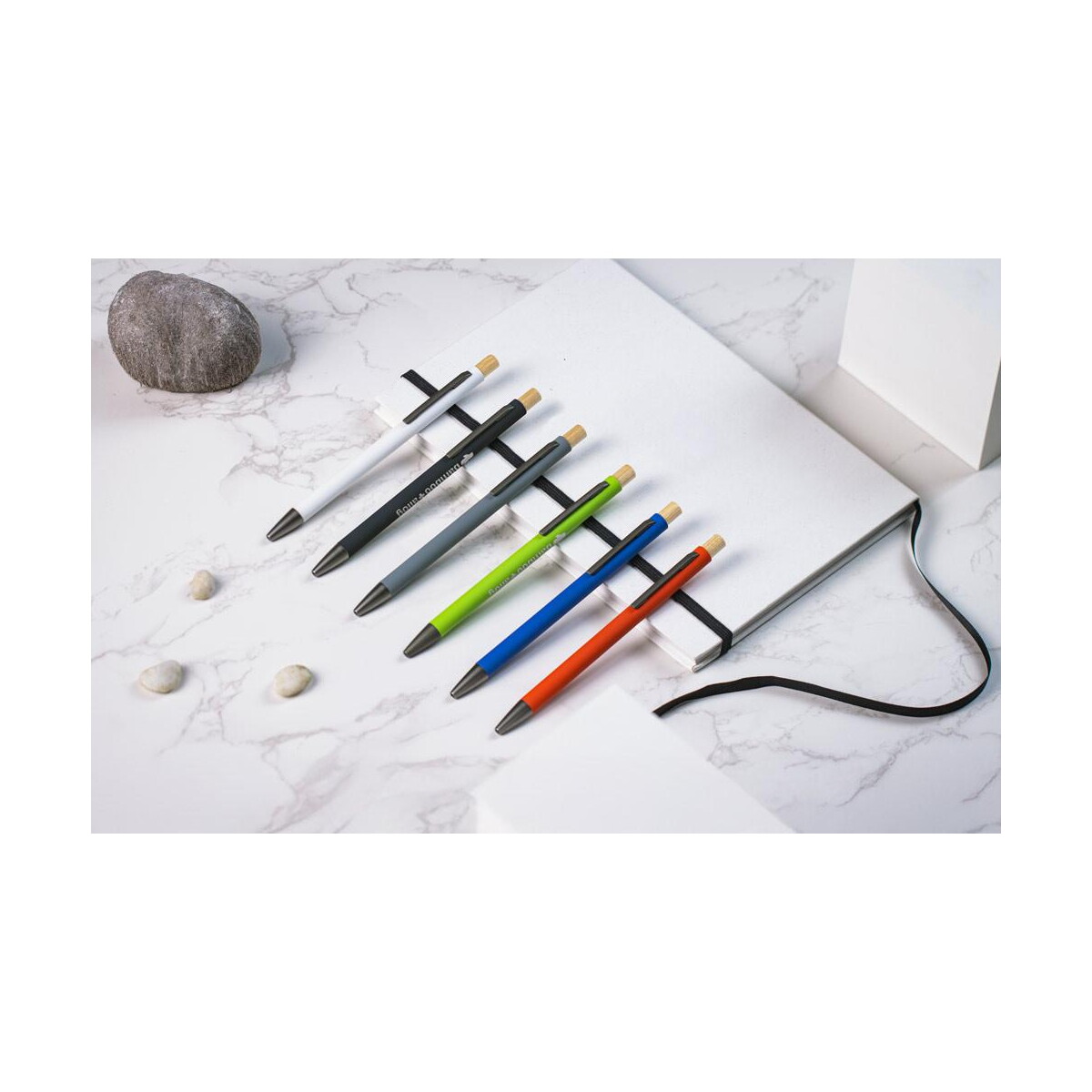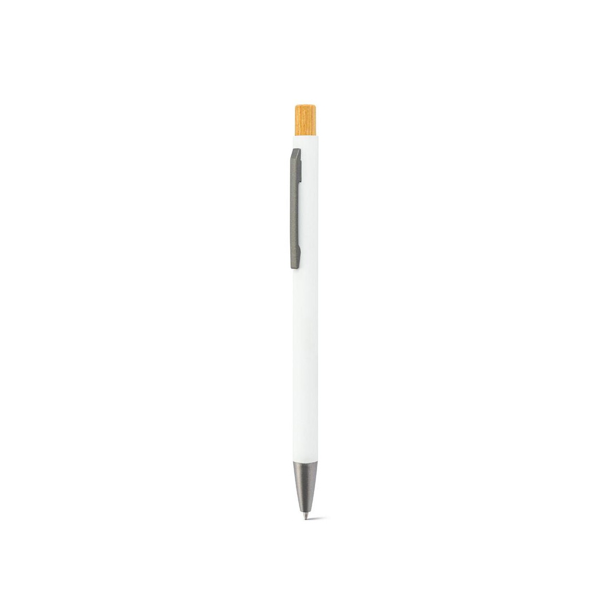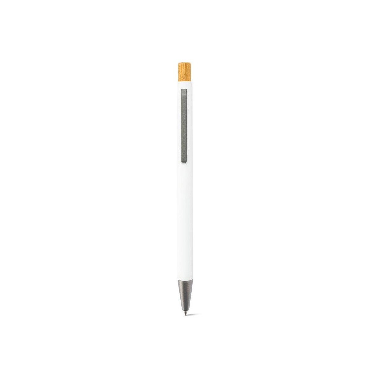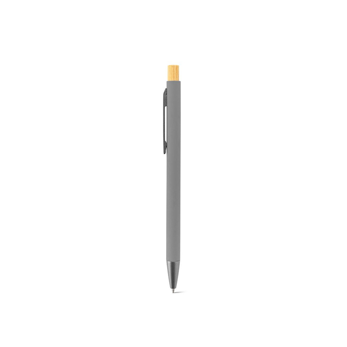 ZYLEN. Długopis z recyklingowanego aluminium (100% rAL) z gumowym wykończeniem to świadomy wybór łączący elegancję metalu z troską o środowisko. Ten ponadczasowy gadżet z kategorii długopisów ekologicznych i metalowych doskonale wpisuje się w aktualne trendy zrównoważonego marketingu. Smukły korpus z odzyskanego aluminium, subtelne matowe, metaliczne szare detale oraz bambusowy przycisk u góry przyciągają wzrok i podkreślają ekocharakter produktu. Dzięki temu reklamowemu drobiazgowi Twoja marka kojarzyć się będzie z nowoczesnością i odpowiedzialnością 🌿.